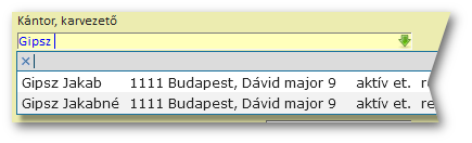 Ha már a nyilvántartásban létező személy, akkor kiválaszthatjuk a listából. Például ha Gipsz Jakab a kántorunk, akkor elkezdjük írni a nevét. Elég, ha annyit írunk be, hogy Gipsz, ekkor a program az összes Gipsz vezetéknevű embert felsorolja a listában.