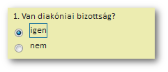 A kérdés melletti gombok közül csak az egyiket kell bepipálni. Általában két lehetőség közül lehet választani. Ilyen például, hogy van-e diakóniai bizottság: